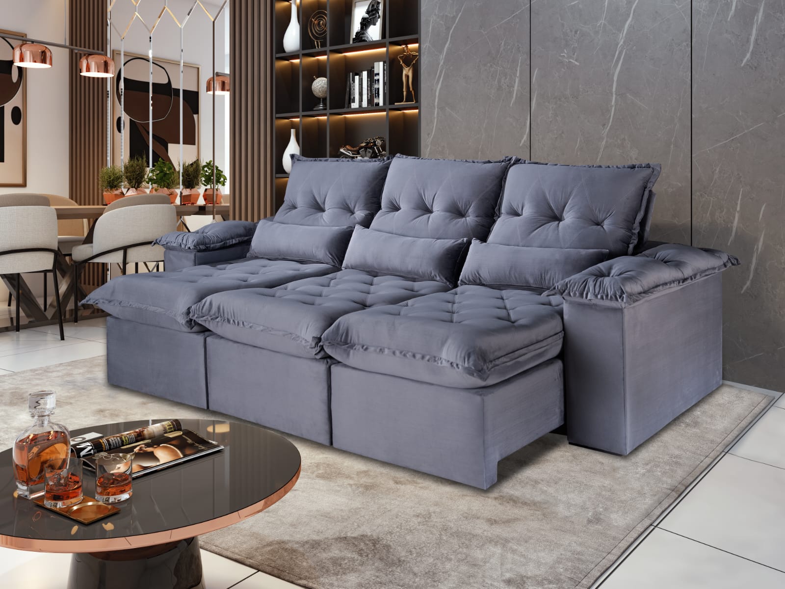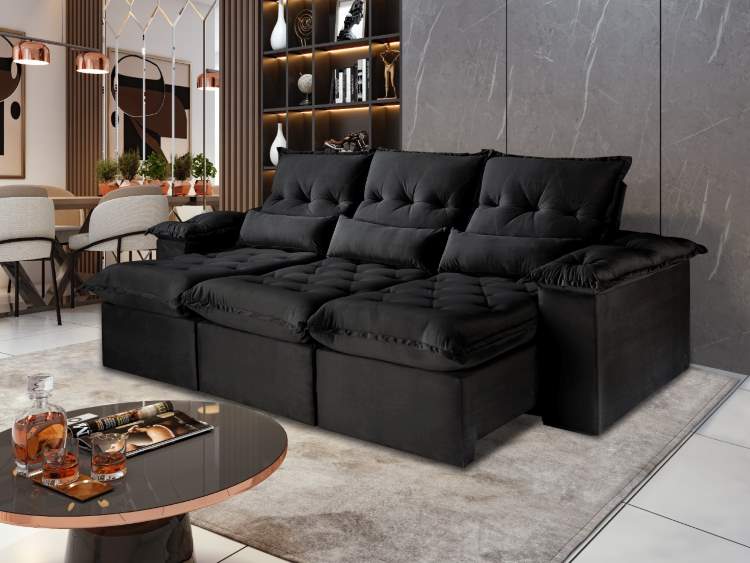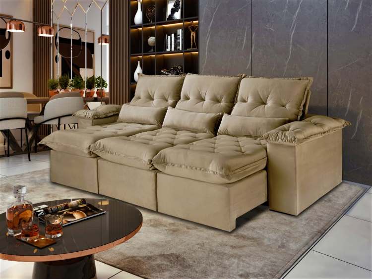 Estofado Retrátil e Reclinável Ouro Preto Veludo Idealle